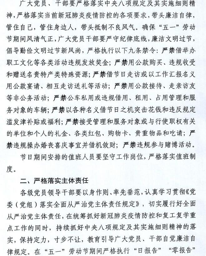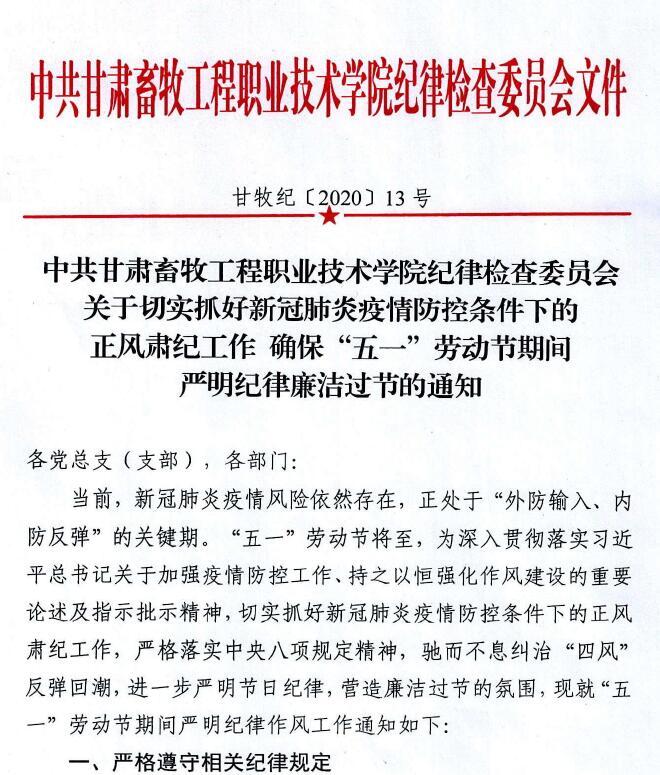 "五一”劳动节期间严明纪律廉洁过节的通知