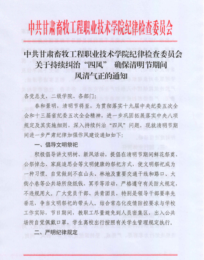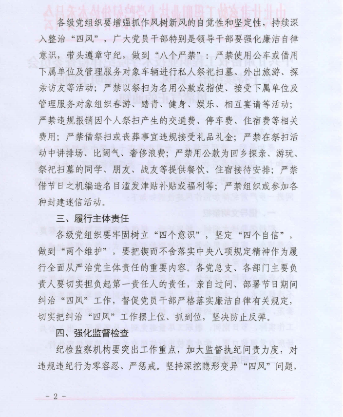 关于持续纠治“四风” 确保清明节期间风清气正的通知