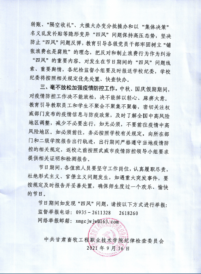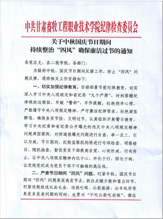 关于中秋国庆节日期间 持续整治“四风”确保廉洁过节的通知